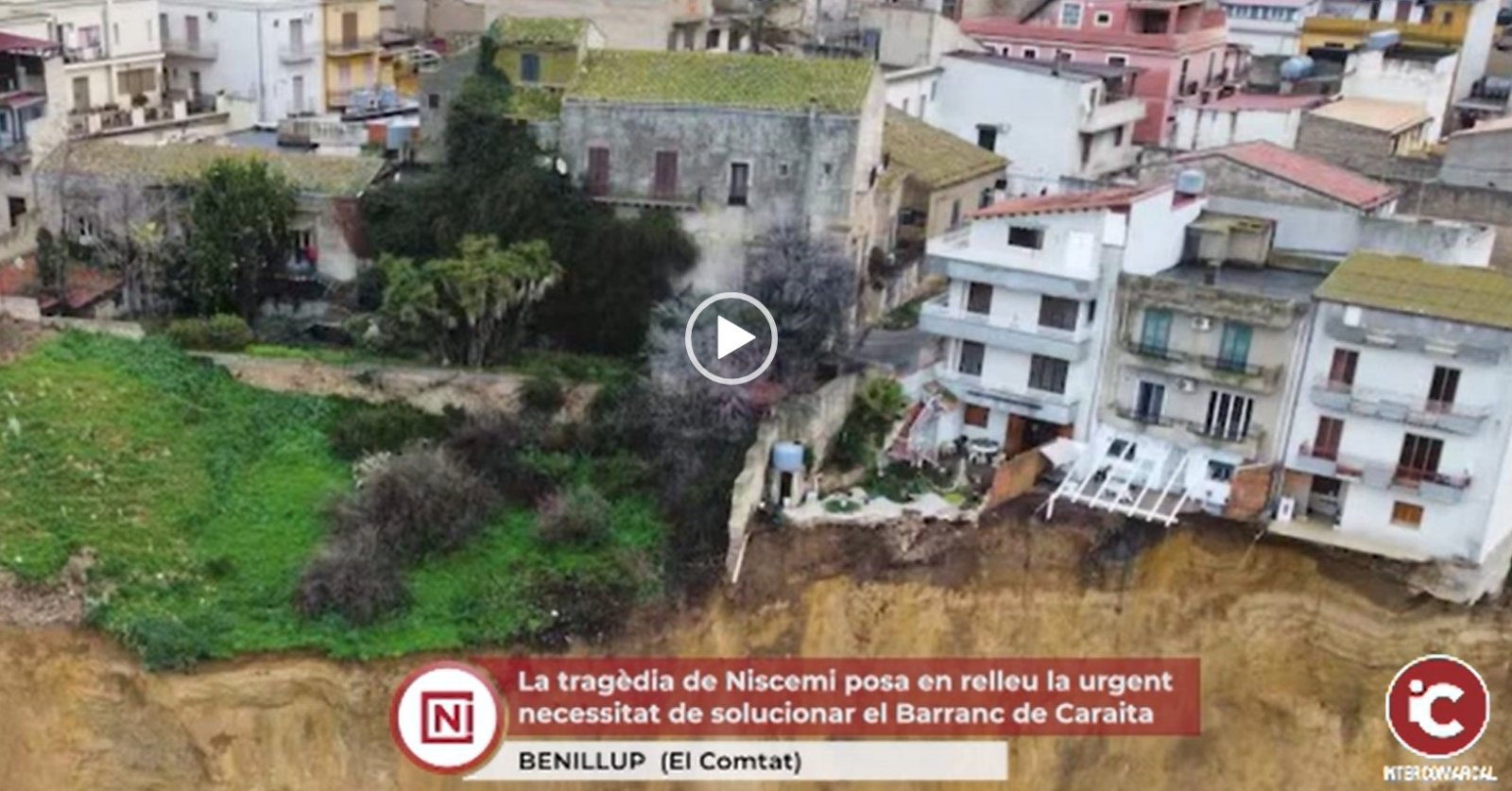 Avui, la comunitat internacional ha estat testimoni de les impactants imatges d’un poble sicilià, Niscemi (Sicília, Itàlia), quedant literalment al borde d’un abisme després d’un deslliçament de terres provocat pel fort temporal que ha afectat el sud d’Itàlia aquesta setmana. Un front de despreniment de més de 4 quilòmetres ha deixat edificis i carrers penjant sobre un precipici, amb més de 1.500 persones evacuades i l’estat d’emergència decretat per part del Govern italià.