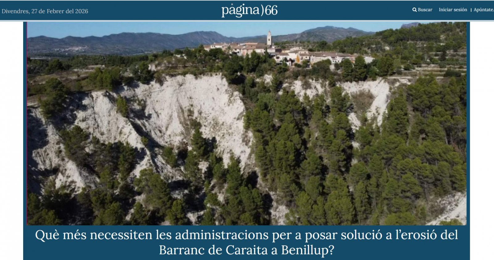 El canvi climàtic s’ha apoderat de molts discursos polítics en els últims anys. En alguns d’ells, pareix que es tracta d’una mentira, una quimera que volen imposar-nos per a no sabem quins motius. Com passa en molts aspectes de la vida, toca demostrar-ho amb fets, amb imatges, amb coses palpables. Per a trobar un exemple clar de què és el canvi climàtic i què conseqüències porta, no cal anar molt lluny. A Benillup porten quasi tres dècades patint-lo amb l’erosió del Barranc de Caraita, cada volta més damunt de les cases del poble.